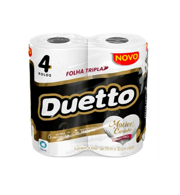 O Papel Higiênico Duetto Folha Tripla é projetado para oferecer o máximo de suavidade e conforto na higiene pessoal.